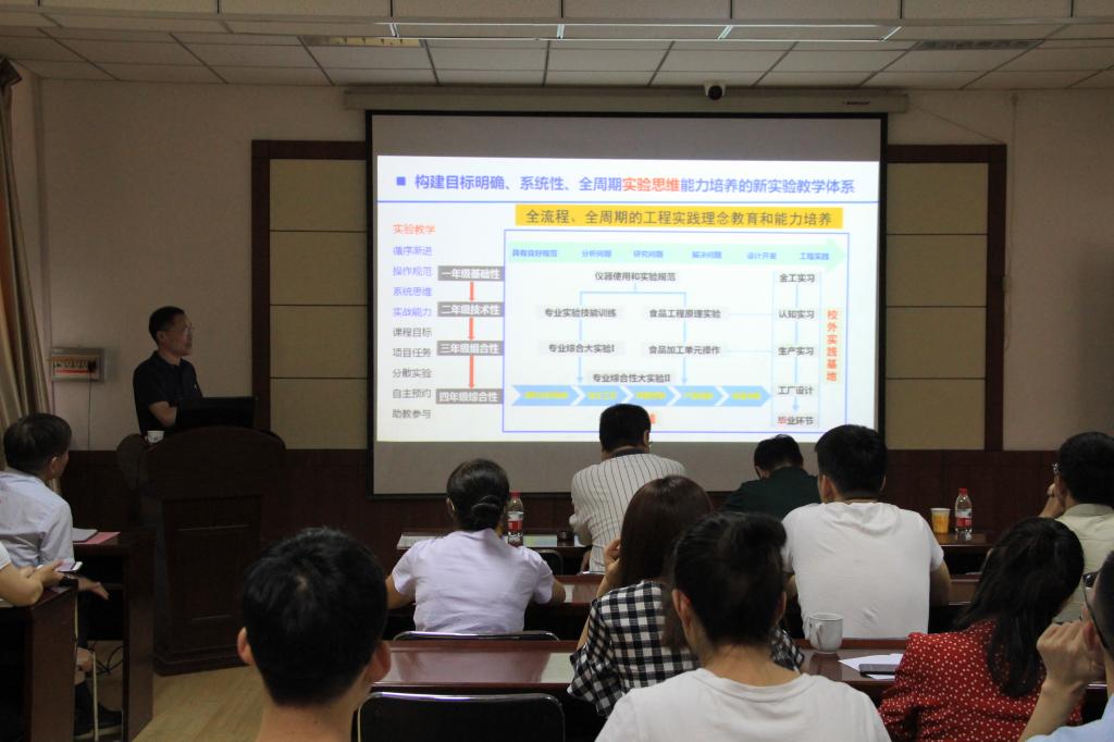 报告会上,孟祥红副院长分析了传统实验教学体系及运行模式中存在的问题,分享了中国海洋大学实验教学的理念,即“全流程、全周期的工程实践理念教育和能力培养”,以分年级开设基础性、技术性、组合性、综合性的实验,并以校内实践与校外实践相结合的方式开展。通过该报告拓展了参会各位教师的实验教学思路,提升了实验教学的理念。