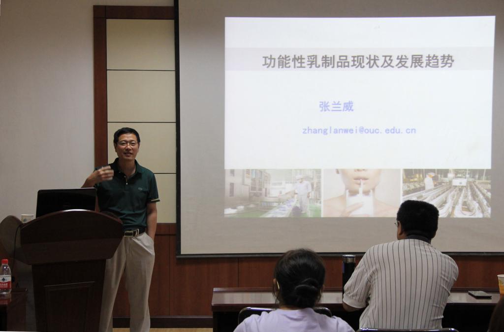张兰威教授从中国乳制品市场及消费水平、消费要求、乳业发展瓶颈问题等方面总结了中国功能性乳制品科研开发现状,并点明了我国功能性乳制品的发展趋势并给出了针对功能性乳制品研究的建议。报告结束后与在场师生进行了热切的交流和探讨,内容包括新疆的乳酸菌资源、特色乳制品的开发与研究等。
